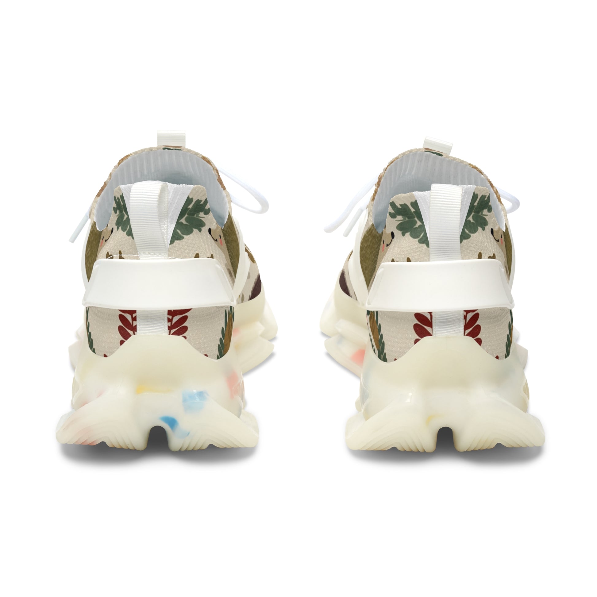 Lightweight mesh sneakers that blend botanical charm with everyday performance. The breathable knit upper features an all-over floral and fauna print in warm, earthy tones that feels at home on city streets or weekend trails. A soft deodorant memory-foam insole cushions each step and manages heat, while the EVA shock-absorbing sole and TPU midsole deliver flexible support for long days on your feet. Durable KPU accents hold up to weather and wear, and the lace-up closure lets you dial in a snug fit. Subtle stitching color matches the sole option you choose, making these sneakers feel thoughtfully finished and easy to pair with casual dresses, jeans, or athleisure layers.